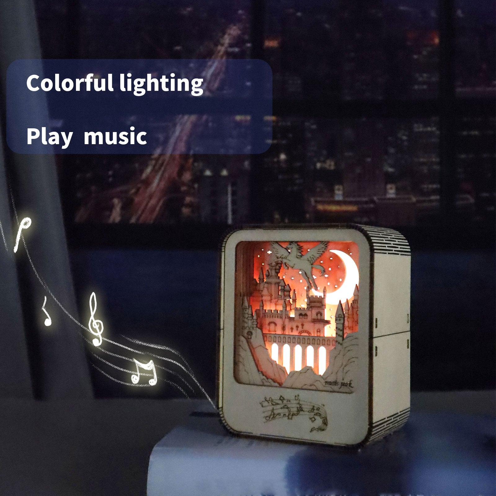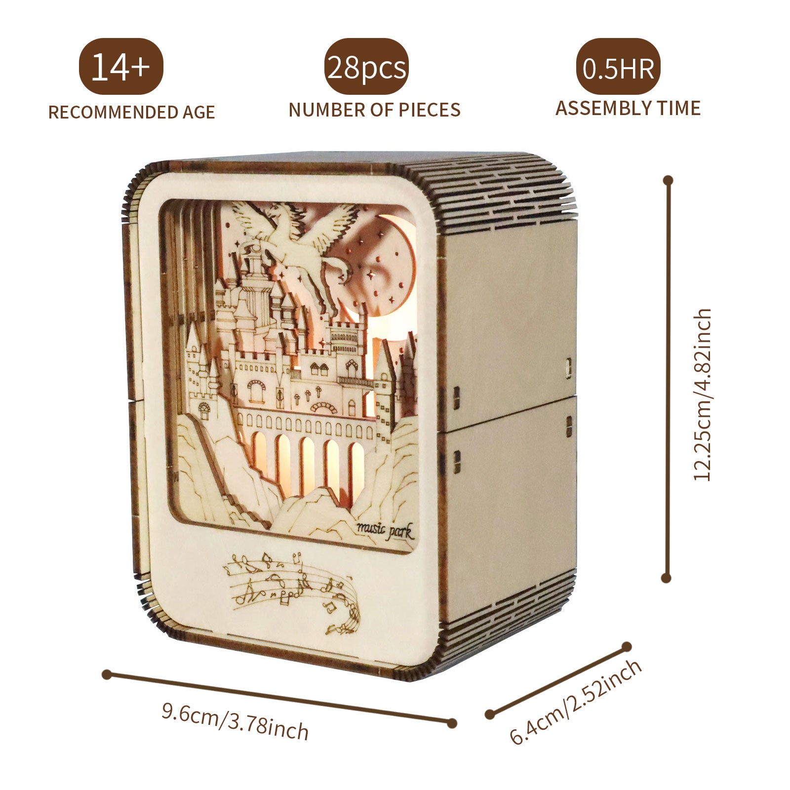 Sales Are Prohibited On The TEMU And SHEIN -MUSIC PARK Music Park 3D Wooden Puzzles Castle Music Box Night Light DIY Crafts Model Kits Birthday And Christmas Gifts